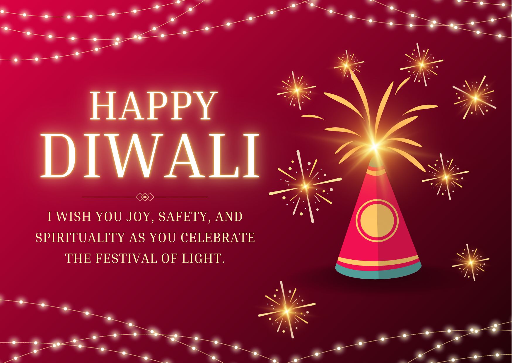 Happy Diwali! Let your spirit glow brighter than the fireworks and your life shine with prosperity.