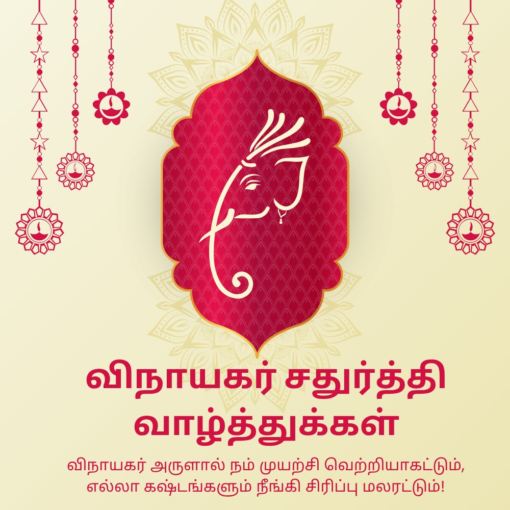 விநாயகர் அனைத்து தடைகளையும் நீக்கி, உங்களுக்கு ஞானத்தையும் வெற்றியையும் அருளட்டும். விநாயகர் சதுர்த்தி வாழ்த்துக்கள்!